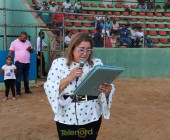 La estelar maestra de ceremonias Odilis Hidalgo llamó a la entrega de un reconocimiento al equipo Gigantes del Cibao en la conmemoración de sus 25 años en beneficio del deporte, la placa fue recibida por Gisell Infante administradora y Don Siquió NG fundador y primer Presidente.