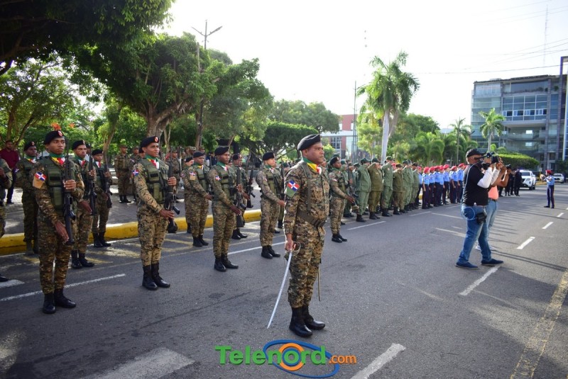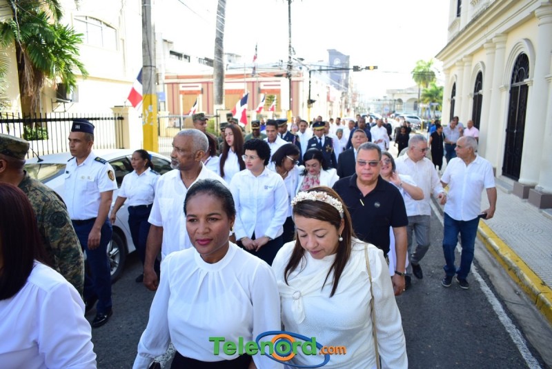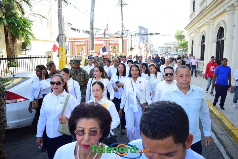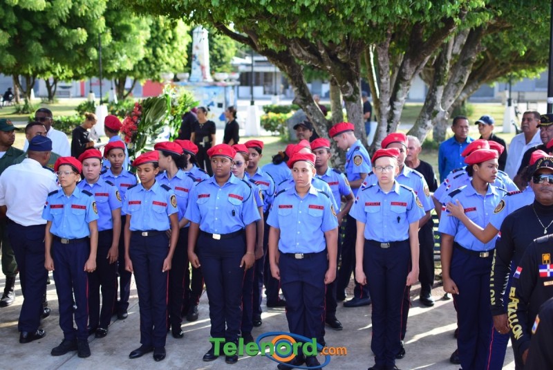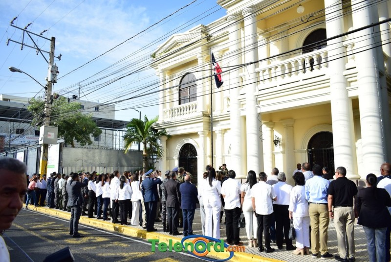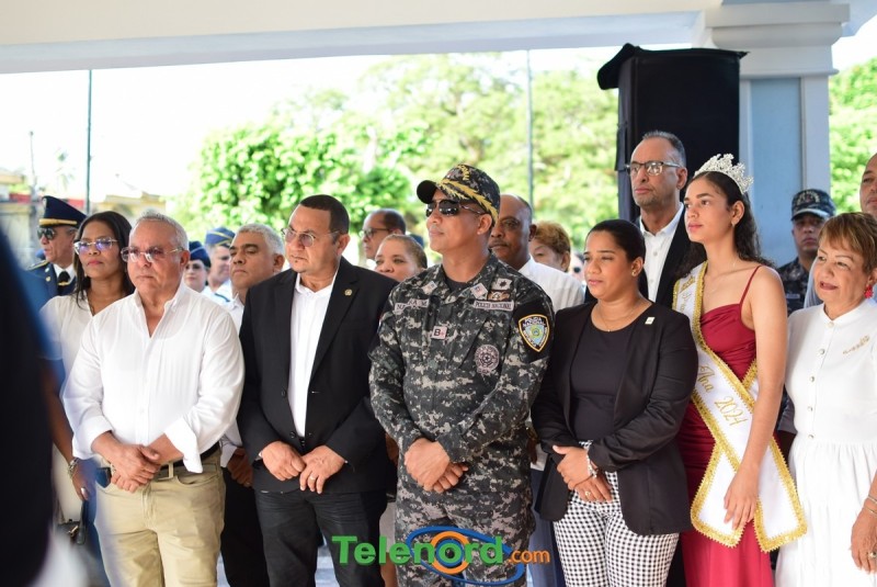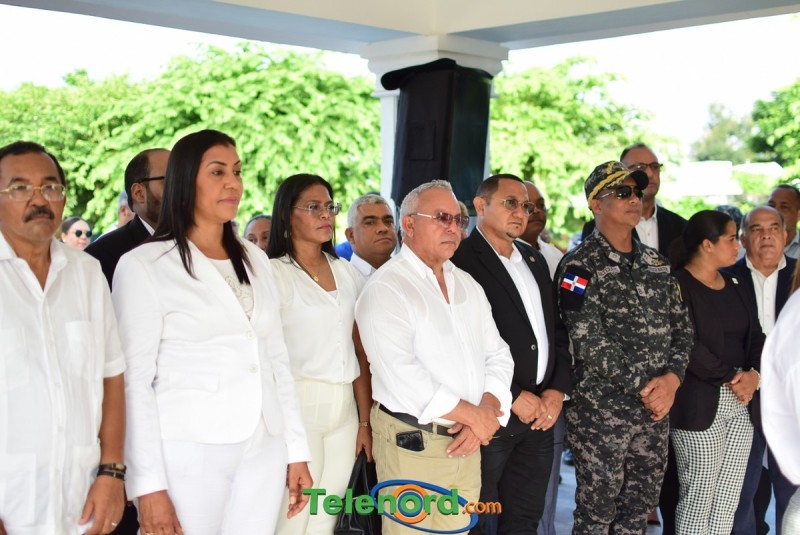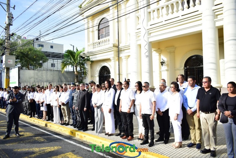 El solemne acto se realizó en la explanada del Palacio Municipal, donde además se interpretaron las notas del Himno Nacional Dominicano, con la presencia de un pelotón del Ejército Nacional y del Benemérito Cuerpo de Bomberos del municipio.