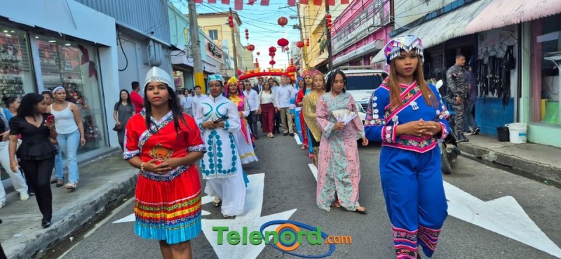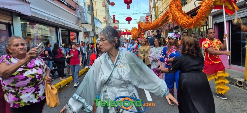En horas de la tarde, el embajador Luning, el alcalde Díaz Paulino y el ex –alcalde Ng. de la Rosa, cortaron la cinta para dejar inaugurada la zona de la comunidad china en el centro de la ciudad, luego la caminata de leones y dragón y jóvenes con trajes de etnias de china y Hanfu caminaron hacia el parque Duarte, donde los presentes se trataron de presentaciones artística, danzas chinas, kung Fu individual, entre otras.