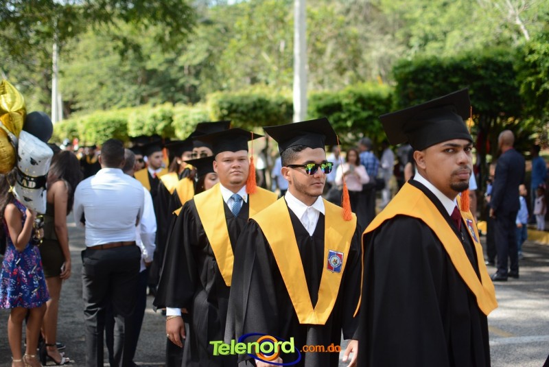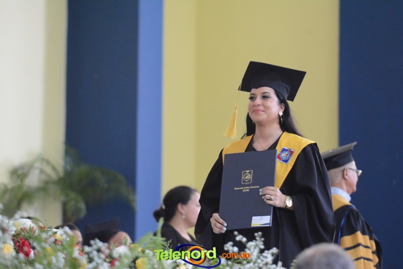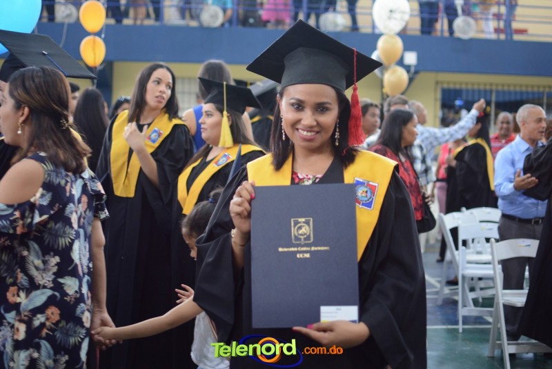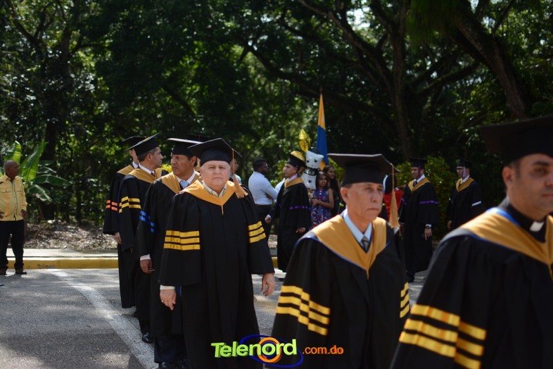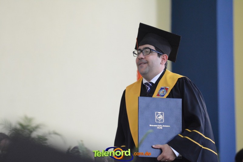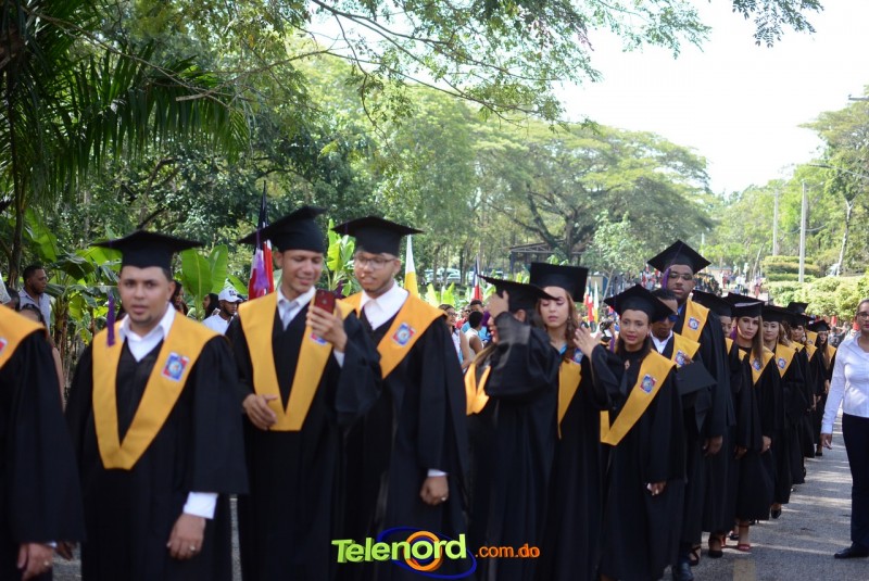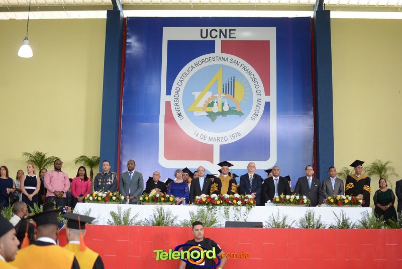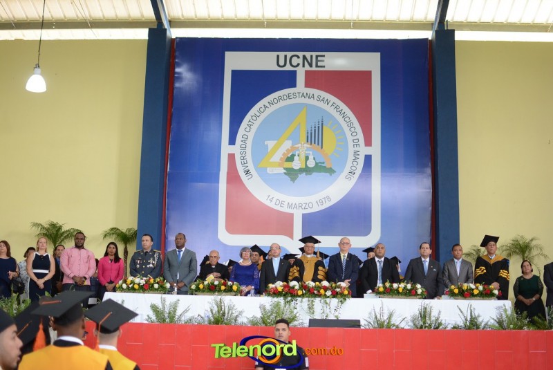 El acto inició con el desfile de los graduandos, dirigido por abanderados del cuerpo de bomberos de esta ciudad, donde posteriormente se procedió a la interpretación de las notas del himno nacional, a cargo de la banda municipal de música y del himno de la UCNE, a cargo del coro universitario.
