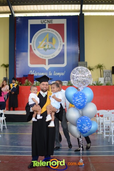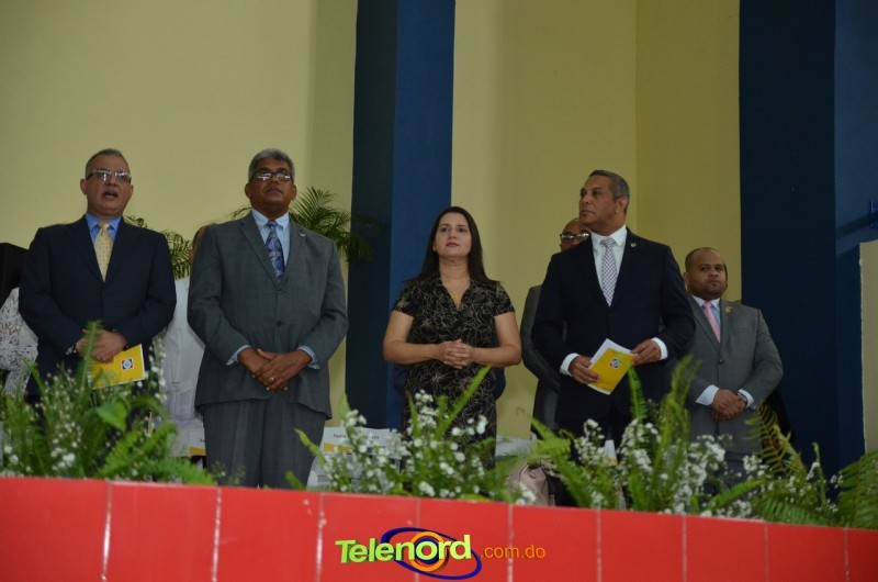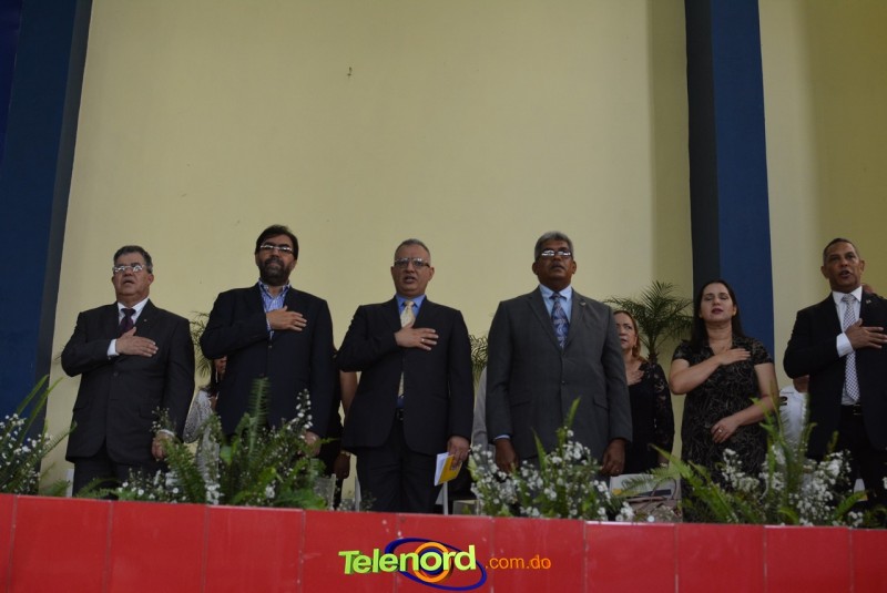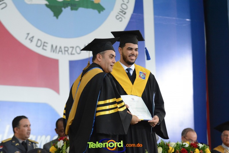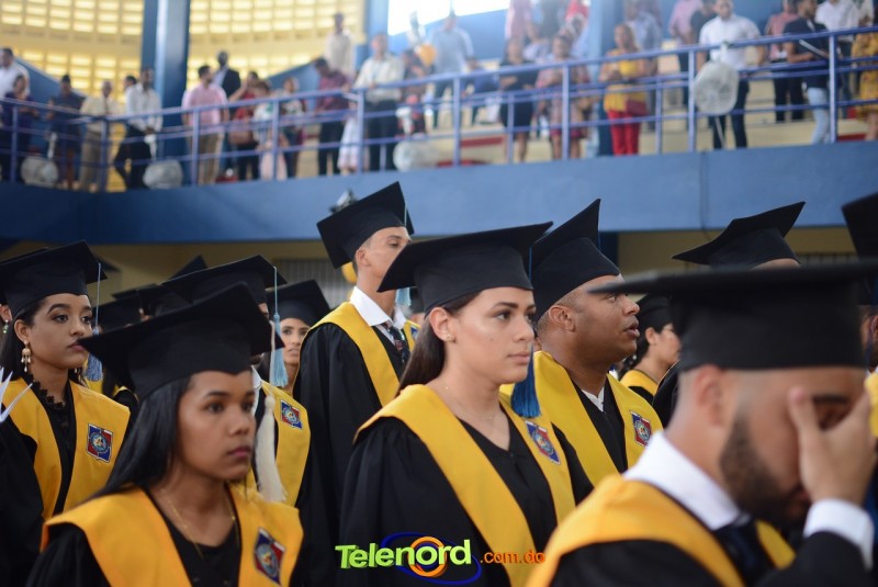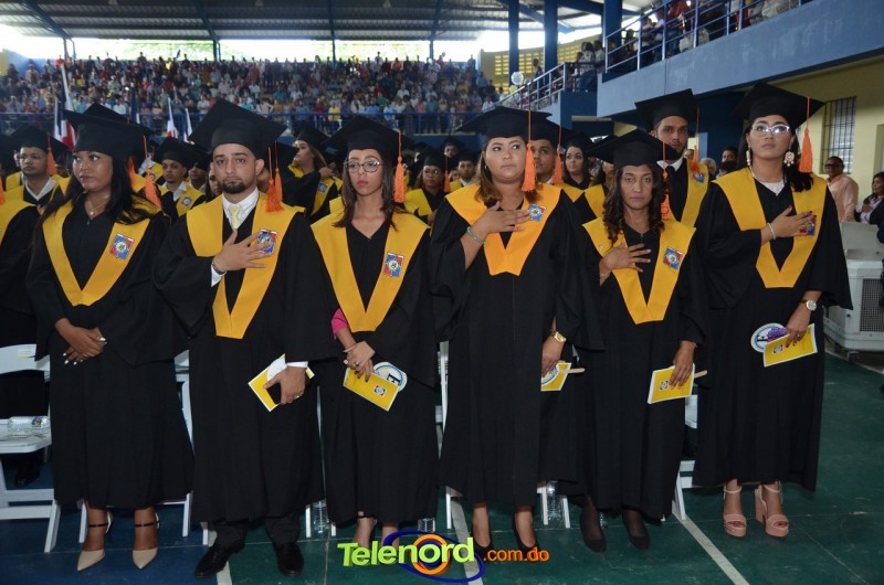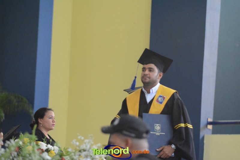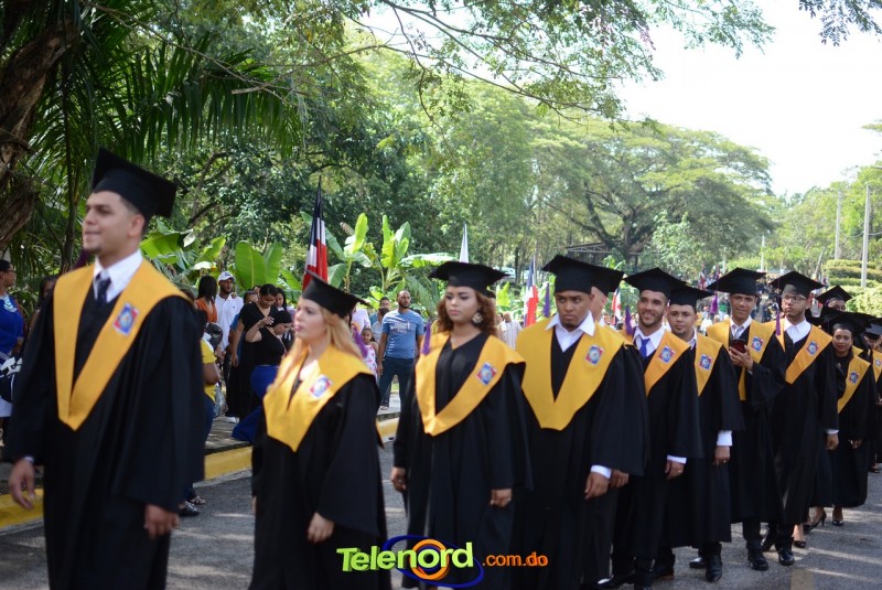 El acto inició con el desfile de los graduandos, dirigido por abanderados del cuerpo de bomberos de esta ciudad, donde posteriormente se procedió a la interpretación de las notas del himno nacional, a cargo de la banda municipal de música y del himno de la UCNE, a cargo del coro universitario.