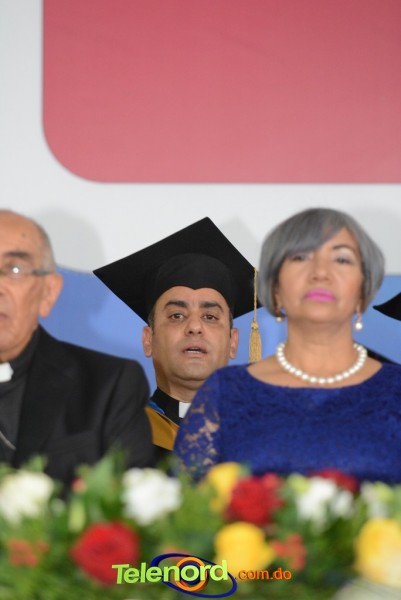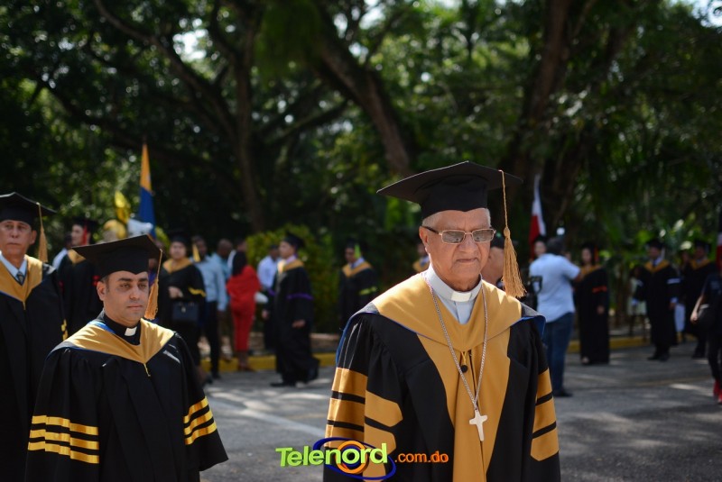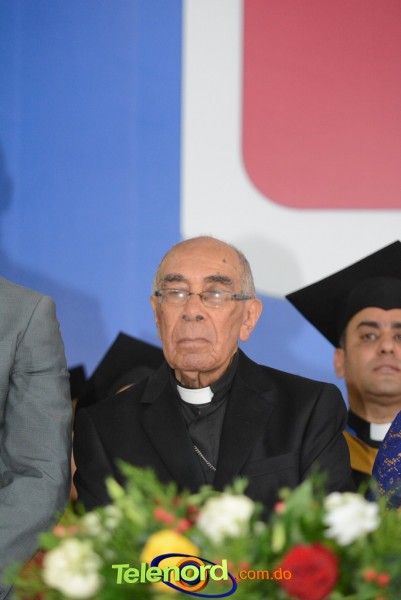El Rector y Gran Canciller de la UCNE, Monseñor doctor Fausto Ramón Mejía Vallejo, acompañado de miembros de la junta de directores del centro, de los vicerrectores y decanos de las distintas facultades académicas, encabezó la ceremonia de graduación.