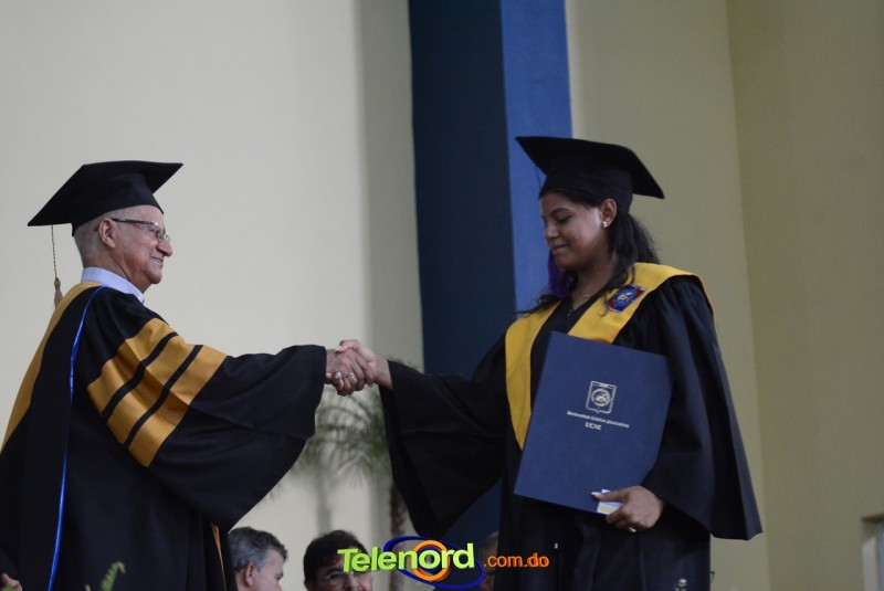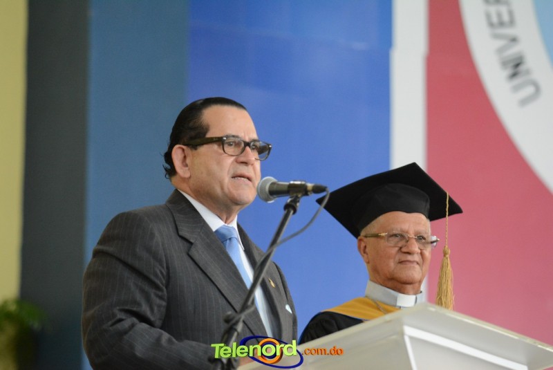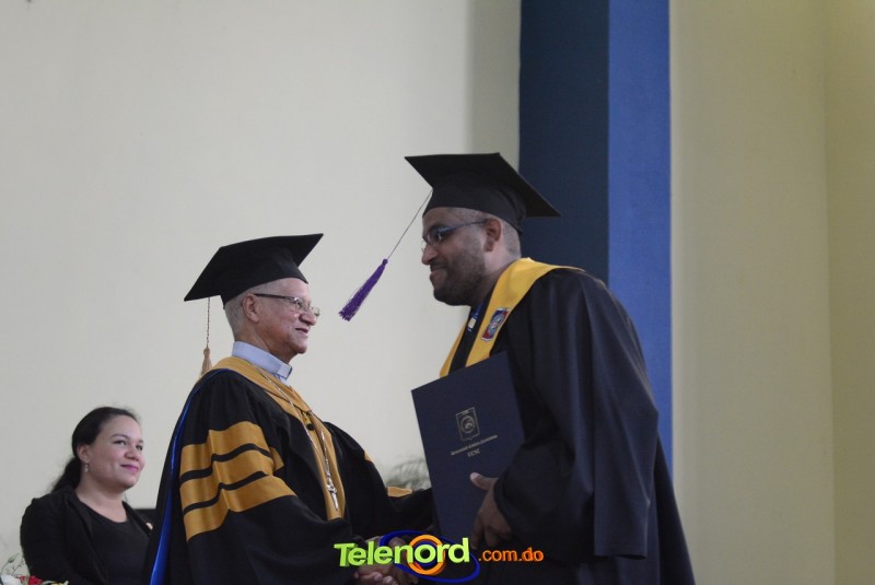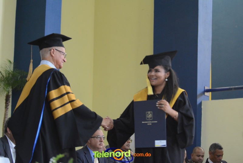 El reverendo padre doctor Isaac García de la Cruz, vicerrector ejecutivo y director de Postgrado de la UCNE, tuvo a su cargo la invocación a Dios, seguido del discurso central, pronunciado por el Gran Canciller y Rector de la institución académica, Mons. Mejía Vallejo, quien al concluir, acompañado del decano o director de la facultad o escuela correspondiente, entregó los diplomas a los nuevos profesionales, además, culminada la entrega, procedió al juramento académico de los graduandos y a solicitar el cambio de borlas.