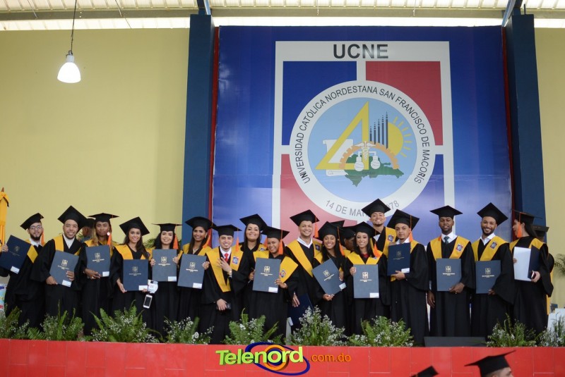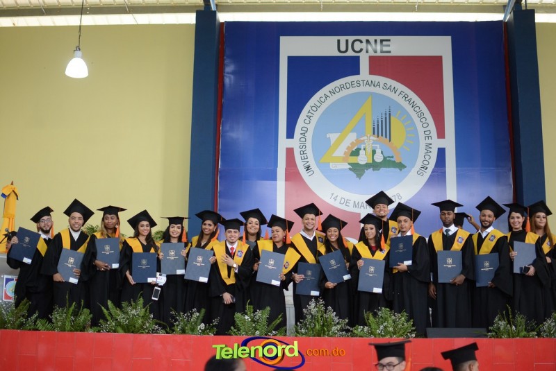 San Francisco de Macorís.- La Universidad Católica Nordestana (UCNE), entregó sus títulos a 555 nuevos profesionales en las áreas de grado y postgrado, en el marco de la Septuagésima Sexta Graduación Ordinaria, celebrada el sábado 28 de septiembre en el Polideportivo de su Campus Universitario.