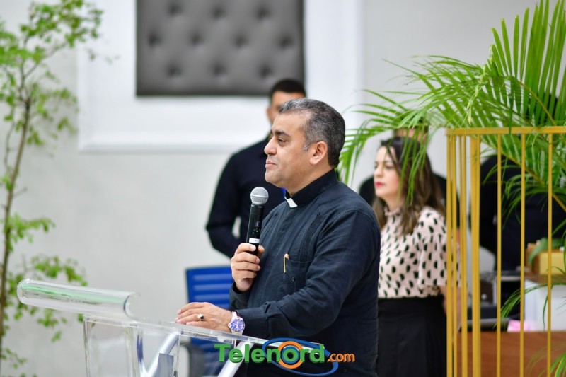 En el acto de apertura, el rector de la UCNE, reverendo padre doctor Isaac García de la Cruz, realizo oración, momento que aprovecho para felicitar a los estudiantes, por el esfuerzo en el montaje del evento.