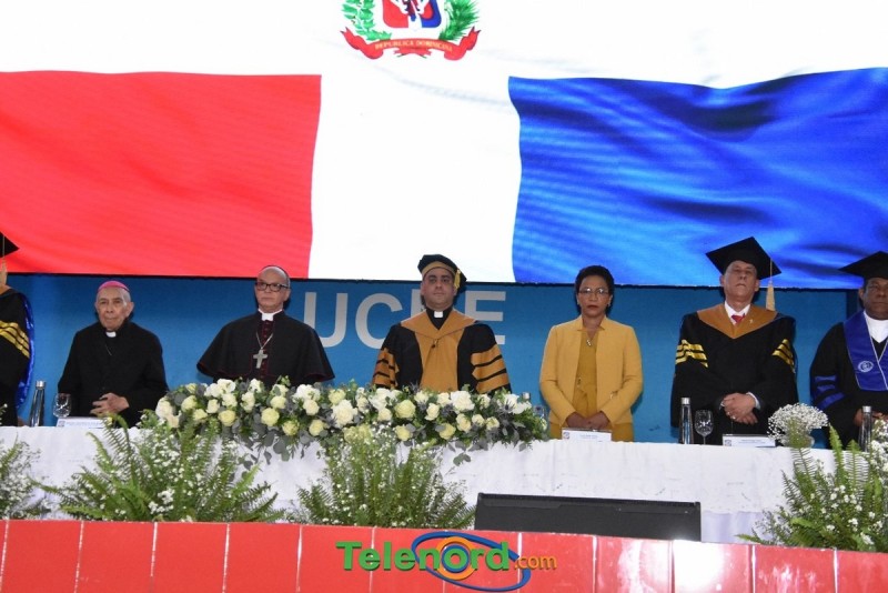 En la ceremonia, Monseñor doctor Ramón Alfredo de la Cruz Baldera, obispo de la Diócesis de San Francisco de Macorís y gran canciller de la UCNE, realizó la solemne invocación a Dios, mientras que las palabras de bienvenida fueron pronunciadas por el doctor Martin Ortega Then, vicerrector académico de la institución.