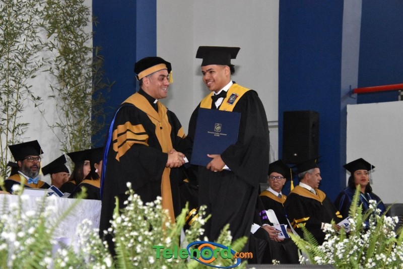 El acto se realizó en el Polideportivo del campus universitario en Los Arroyos, presidido por el Rev. P. Dr. Isaac García de la Cruz, rector de la institución, y contó con la participación de autoridades académicas, civiles y militares, así como familiares de los graduados e invitados especiales.
