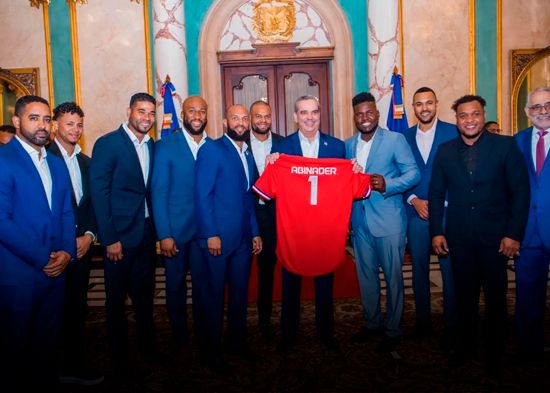 De igual forma, el mandatario recibió la camiseta que usará el conjunto dominicano en el torneo, con el # 1 y apellido Abinader.