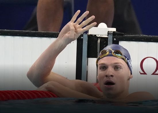 Léon Marchand levantó cuatro dedos.