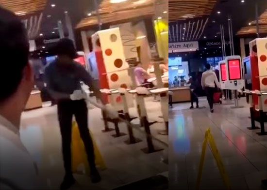 Indignación e impotencia ha provocado un video que circula en las redes sociales, en el que dos jóvenes provocan a una empleada de un establecimiento de comida rápida que se ocupaba de las labores de limpieza del establecimiento.