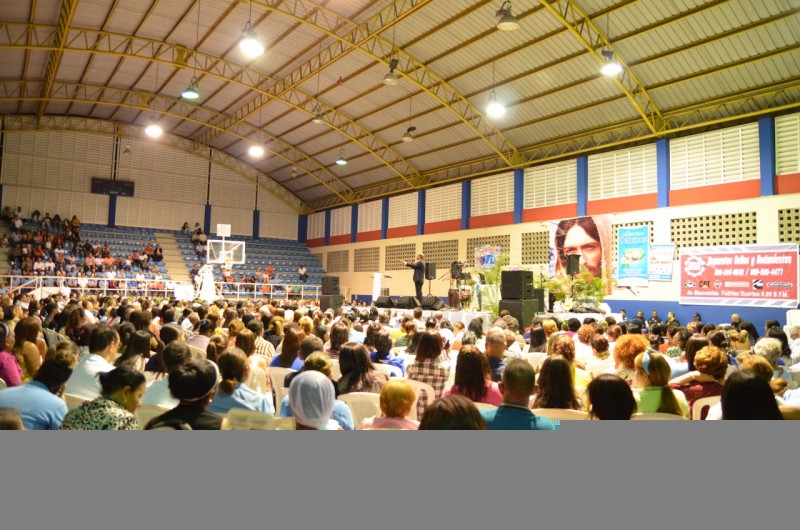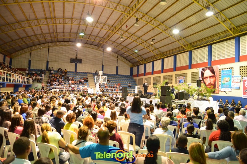 San Francisco de Macorís.- Cientos de fieles católicos acudieron en la noche del sábado 25 de enero, a la charla-conferencia “Cree, crece y confía”, con el evangelista Saulo Hidalgo, en el Polideportivo del Club San Martín.