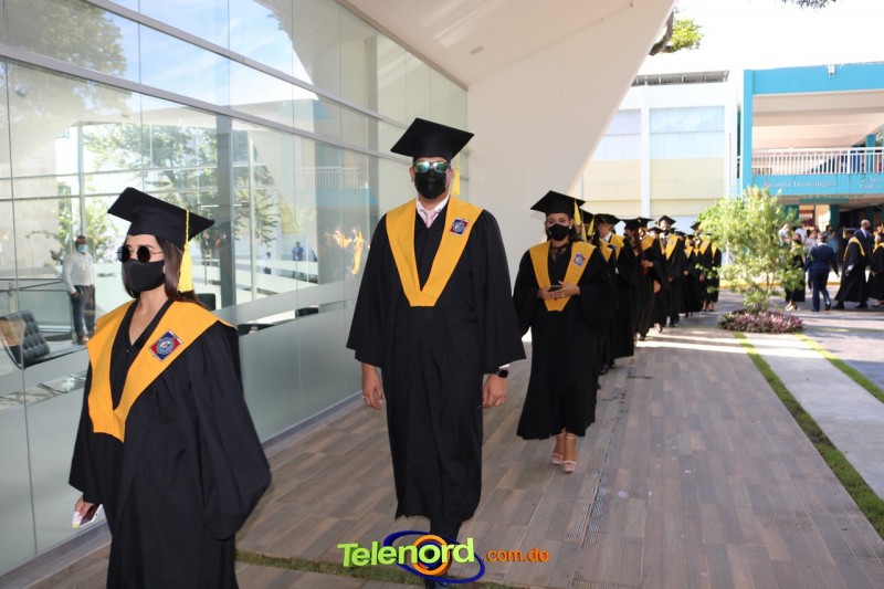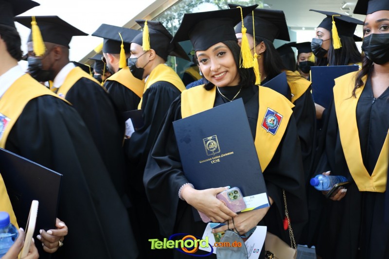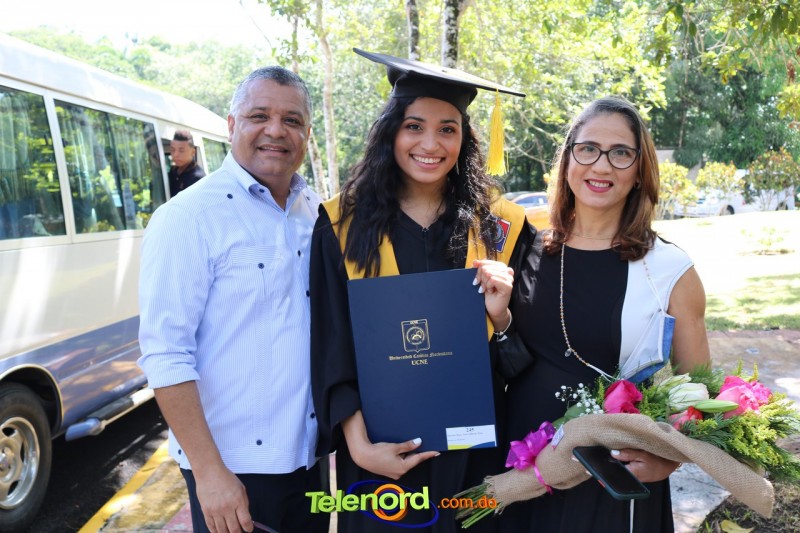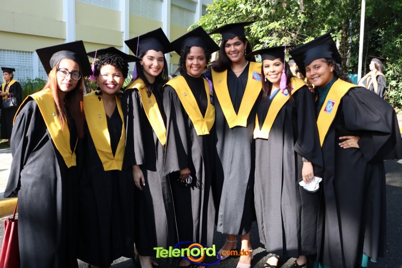 La ceremonia de graduación estuvo encabezada por las principales autoridades de la UCNE y se lleva cabo en los salones del Teatro Regional del Nordeste, en el campus universitario de Los Arroyos.