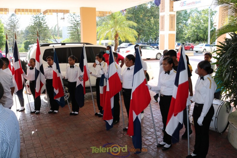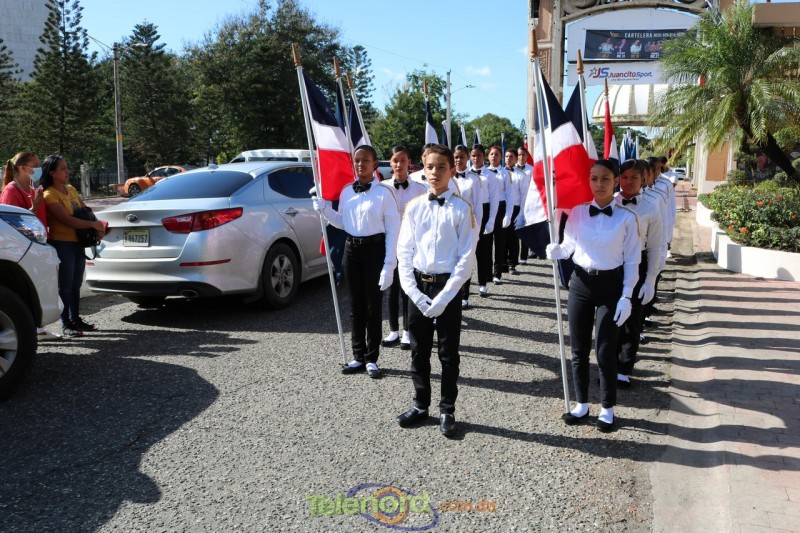 Los abanderados del Liceo Pedro Henriquez Ureña acompañaron la ofrenda floral al busto del coronel Juan María Lora Fernández, caído en combate en esa batalla.