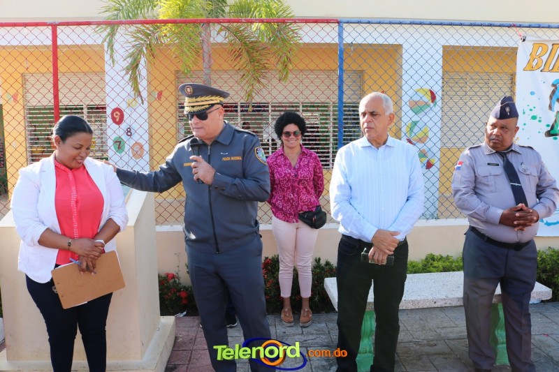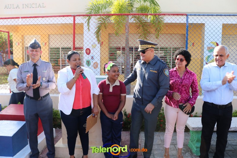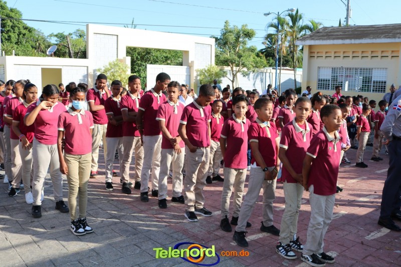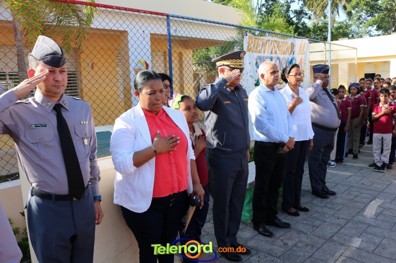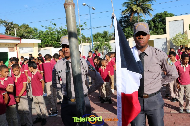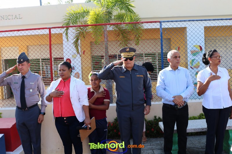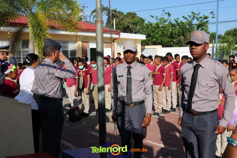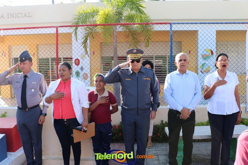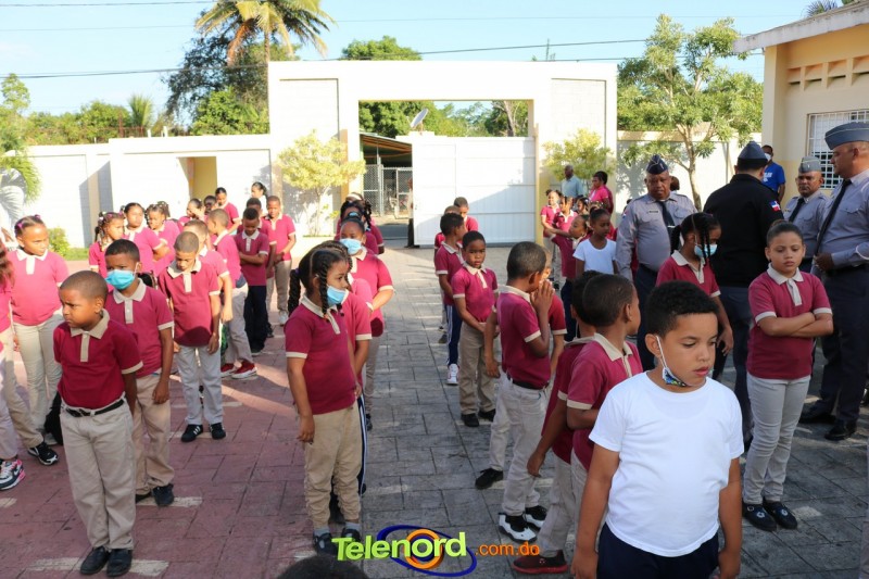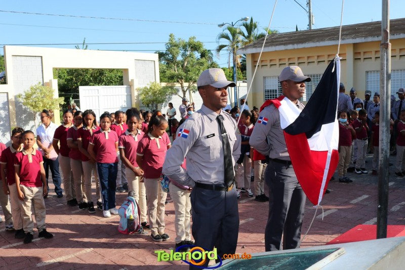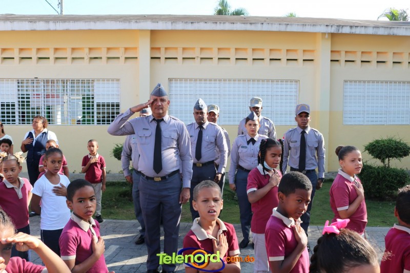 San Francisco De Macorís.- En un emotivo acto de acercamiento entre las comunidades educativas y la Policía fue realizado un izamiento de la bandera nacional en el Centro Educativo Máximo Gómez de la comunidad de Mata Larga.