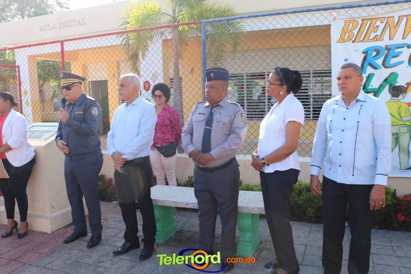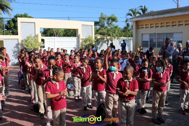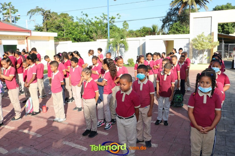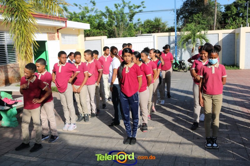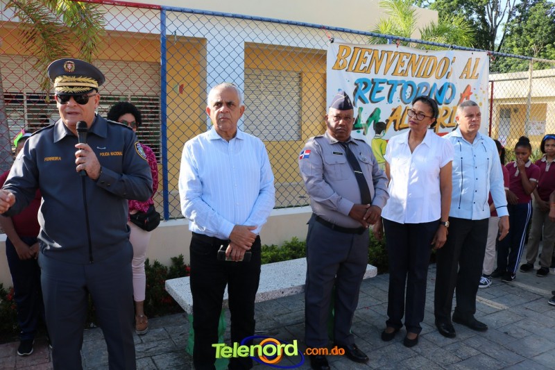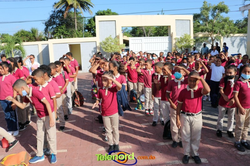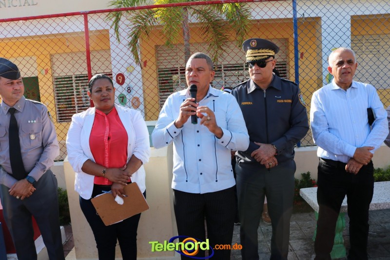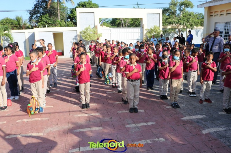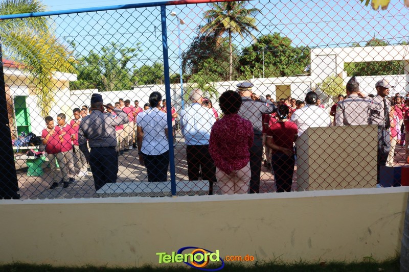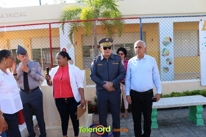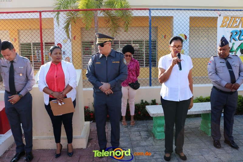 San Francisco De Macorís.- En un emotivo acto de acercamiento entre las comunidades educativas y la Policía fue realizado un izamiento de la bandera nacional en el Centro Educativo Máximo Gómez de la comunidad de Mata Larga.