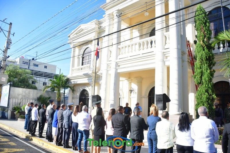 Los actos iniciaron con la interpretación del himno nacional e izamiento de la bandera, frente al Palacio Municipal, con la presencia del alcalde municipal Siquio NG de la Rosa, la gobernadora civil y provincial de Duarte Xiomara Cortés, y los miembros de la sala capitular.