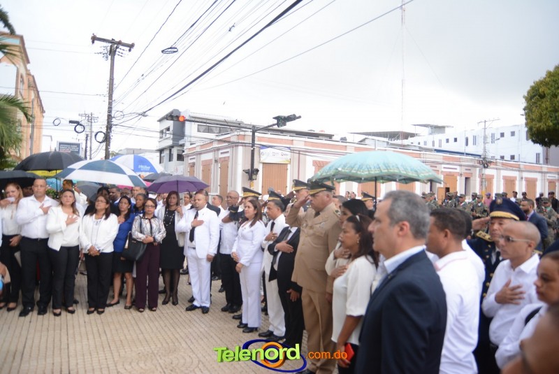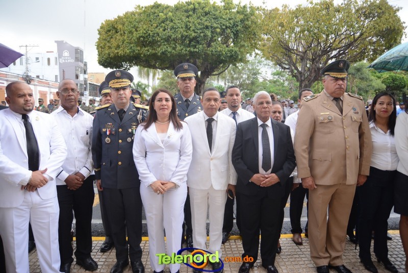 Este solemne acto se realizó en la explanada del Palacio Municipal de esta ciudad, donde además se interpretaron las notas del Himno Nacional Dominicano, con la presencia de un pelotón del Ejército Nacional y del Benemérito Cuerpo de Bomberos del municipio.