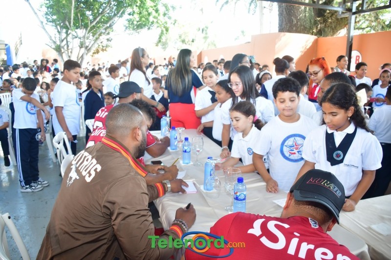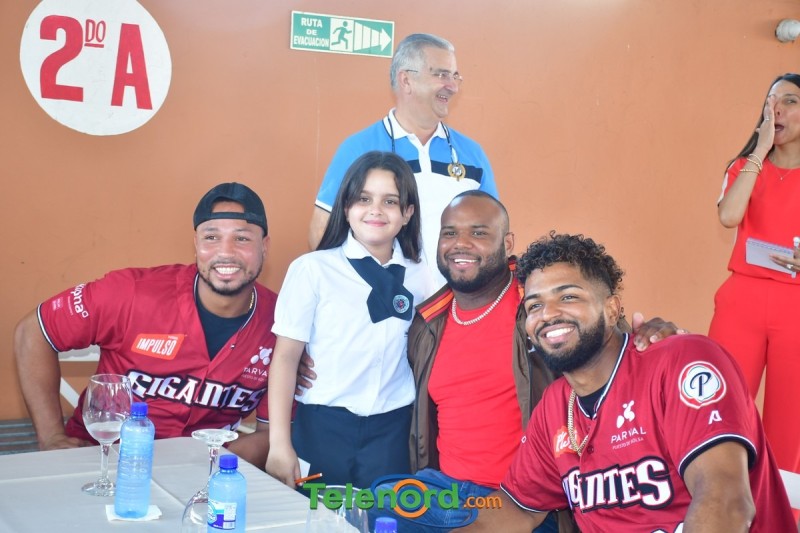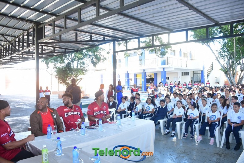Jugadores y coaches que integran el equipo cibaeño como Hansel Alberto, Carlos Peguero, entre otros, compartieron con los pequeños Gigantes y personal docente del centro educativo, firmando autógrafos, charlando y respondiendo preguntas.