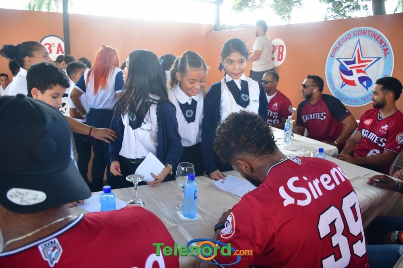 San Francisco De Macorís.- Varios de los jugadores del equipo Gigantes del Cibao realizaron una parada al Colegio Continental, como parte de la campaña “Tour Gigante por la Educación”, el martes 28 de noviembre.