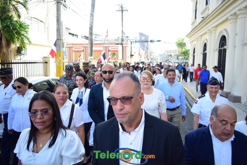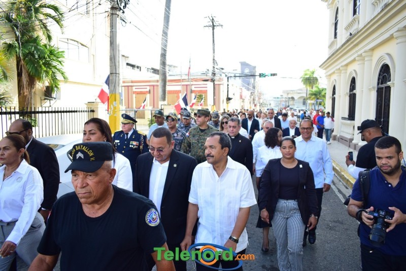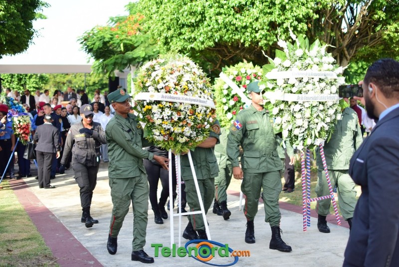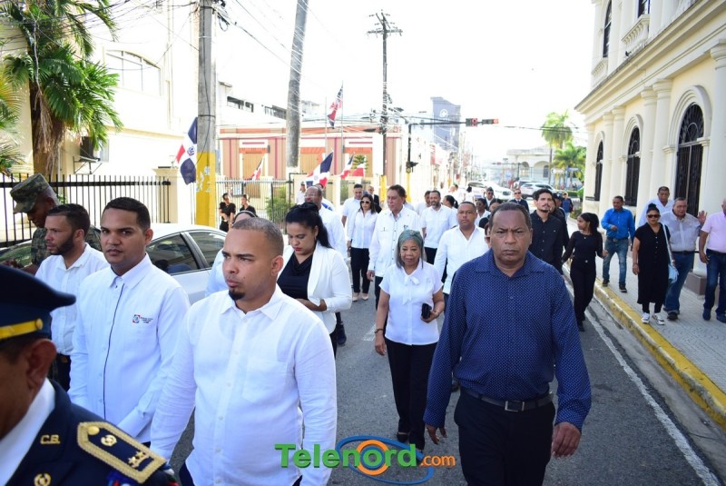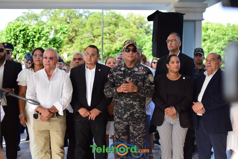 El solemne acto se realizó en la explanada del Palacio Municipal, donde además se interpretaron las notas del Himno Nacional Dominicano, con la presencia de un pelotón del Ejército Nacional y del Benemérito Cuerpo de Bomberos del municipio.