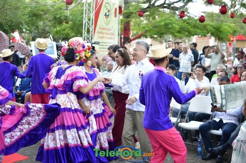En horas de la tarde, el embajador Luning, el alcalde Díaz Paulino y el ex –alcalde Ng. de la Rosa, cortaron la cinta para dejar inaugurada la zona de la comunidad china en el centro de la ciudad, luego la caminata de leones y dragón y jóvenes con trajes de etnias de china y Hanfu caminaron hacia el parque Duarte, donde los presentes se trataron de presentaciones artística, danzas chinas, kung Fu individual, entre otras.