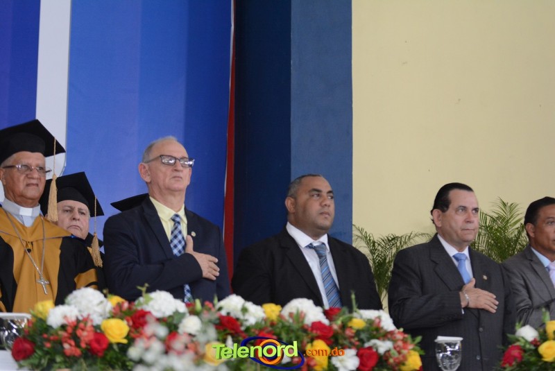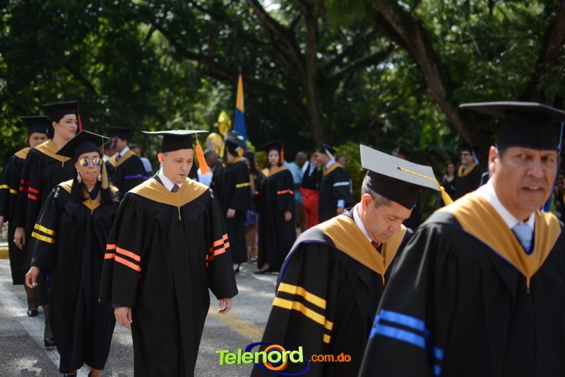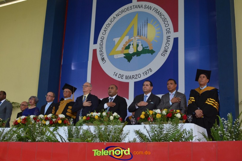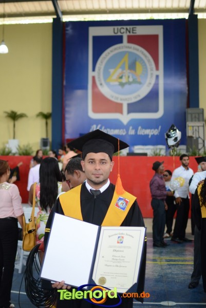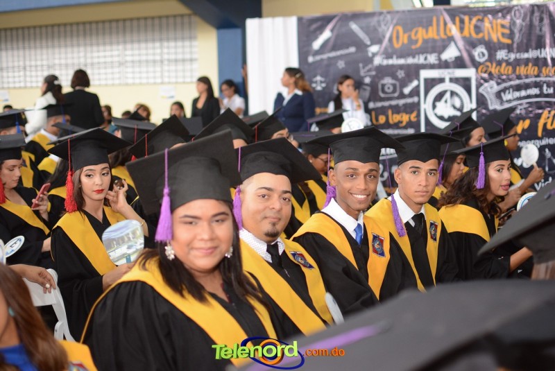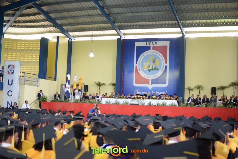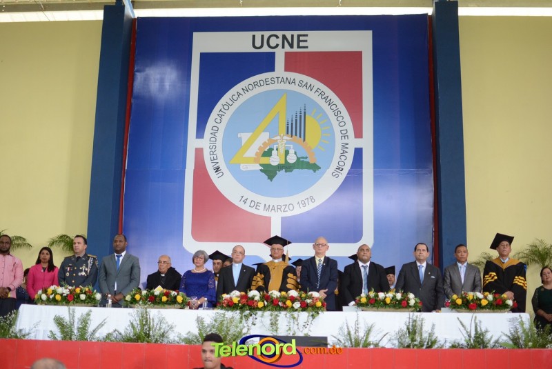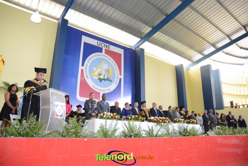 El acto inició con el desfile de los graduandos, dirigido por abanderados del cuerpo de bomberos de esta ciudad, donde posteriormente se procedió a la interpretación de las notas del himno nacional, a cargo de la banda municipal de música y del himno de la UCNE, a cargo del coro universitario.