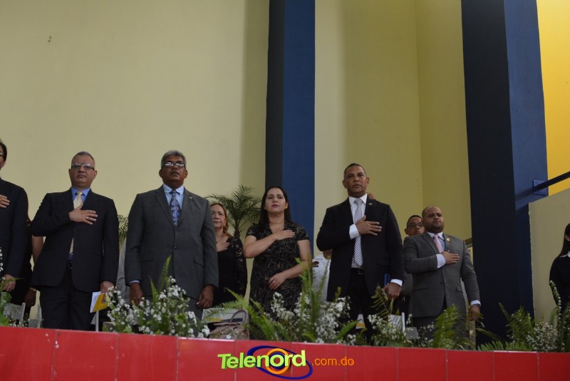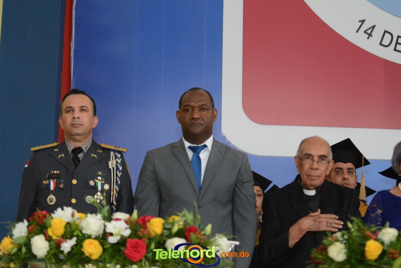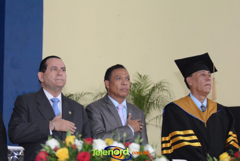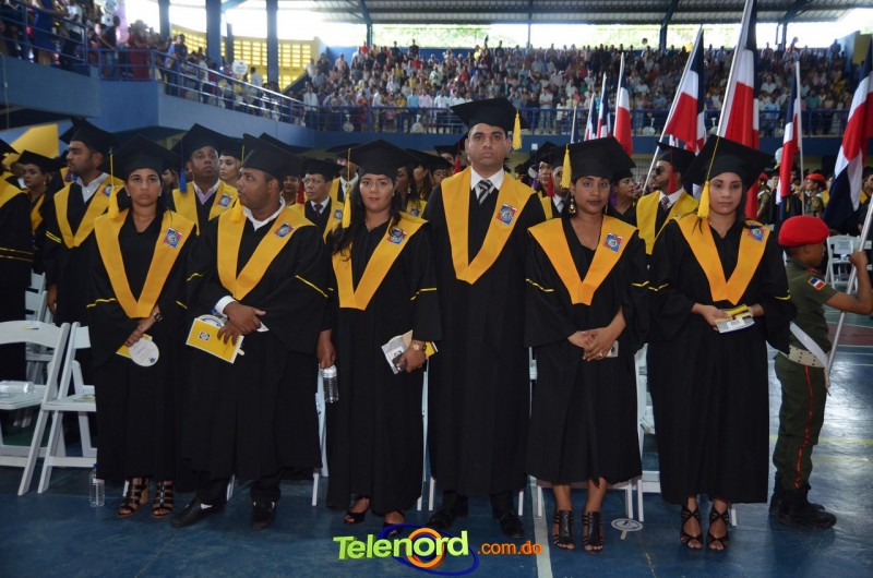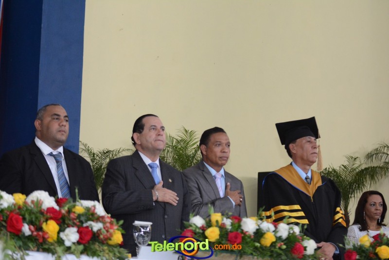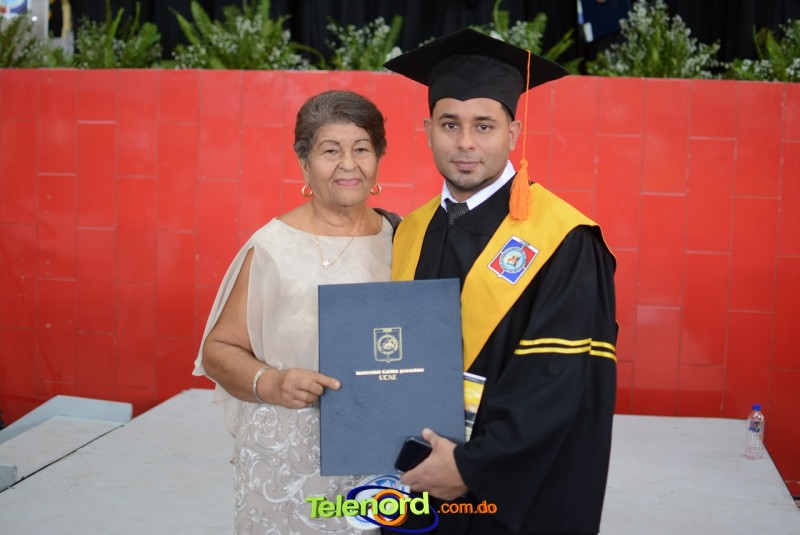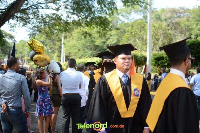 El acto inició con el desfile de los graduandos, dirigido por abanderados del cuerpo de bomberos de esta ciudad, donde posteriormente se procedió a la interpretación de las notas del himno nacional, a cargo de la banda municipal de música y del himno de la UCNE, a cargo del coro universitario.