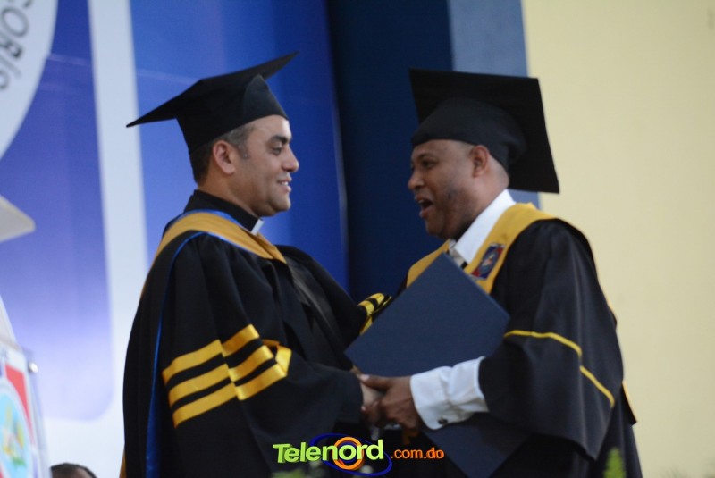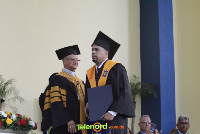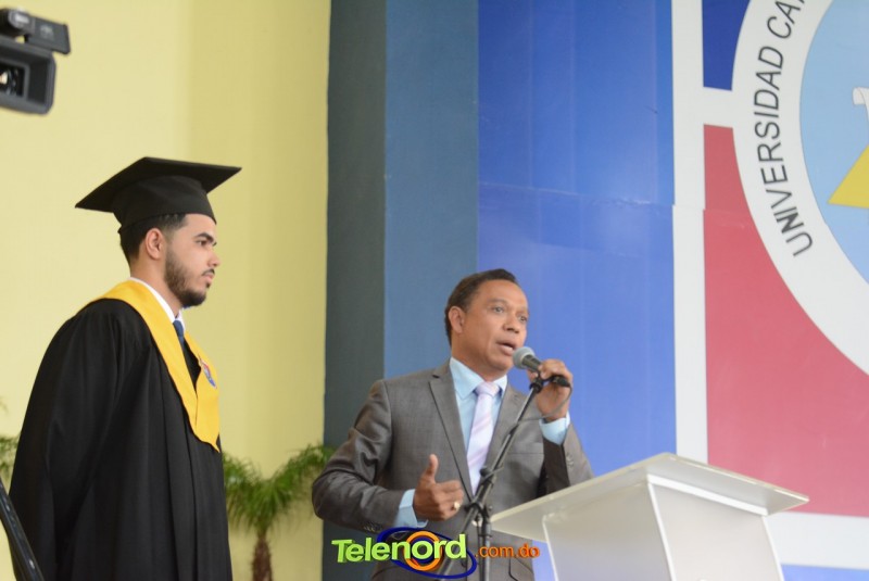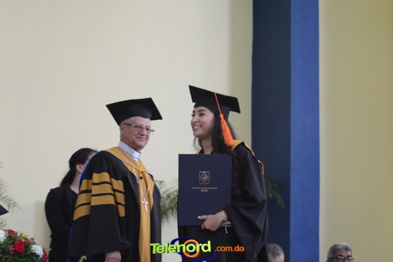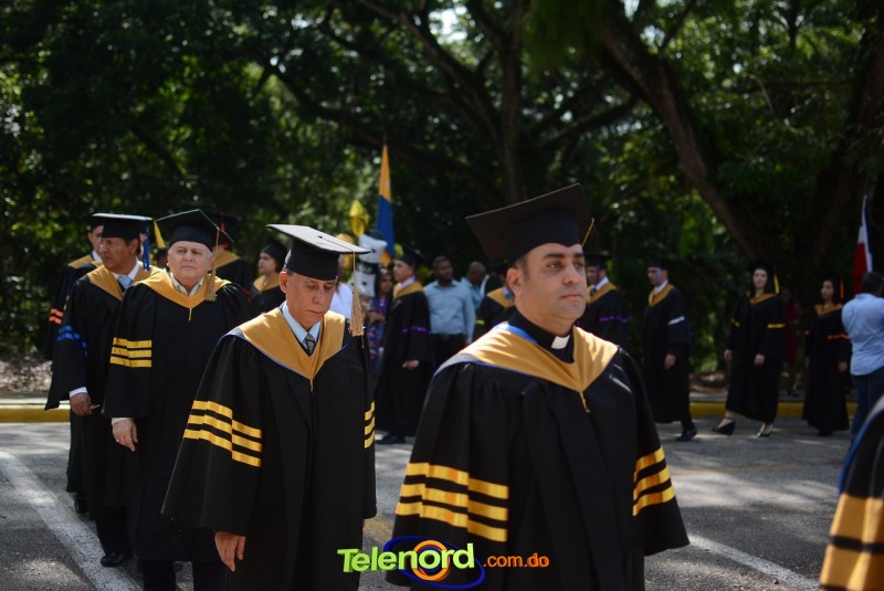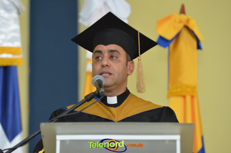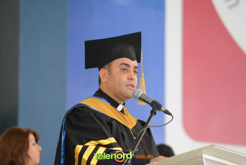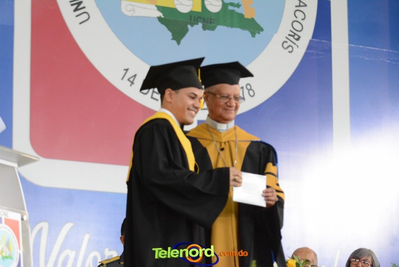 El reverendo padre doctor Isaac García de la Cruz, vicerrector ejecutivo y director de Postgrado de la UCNE, tuvo a su cargo la invocación a Dios, seguido del discurso central, pronunciado por el Gran Canciller y Rector de la institución académica, Mons. Mejía Vallejo, quien al concluir, acompañado del decano o director de la facultad o escuela correspondiente, entregó los diplomas a los nuevos profesionales, además, culminada la entrega, procedió al juramento académico de los graduandos y a solicitar el cambio de borlas.