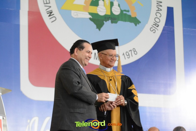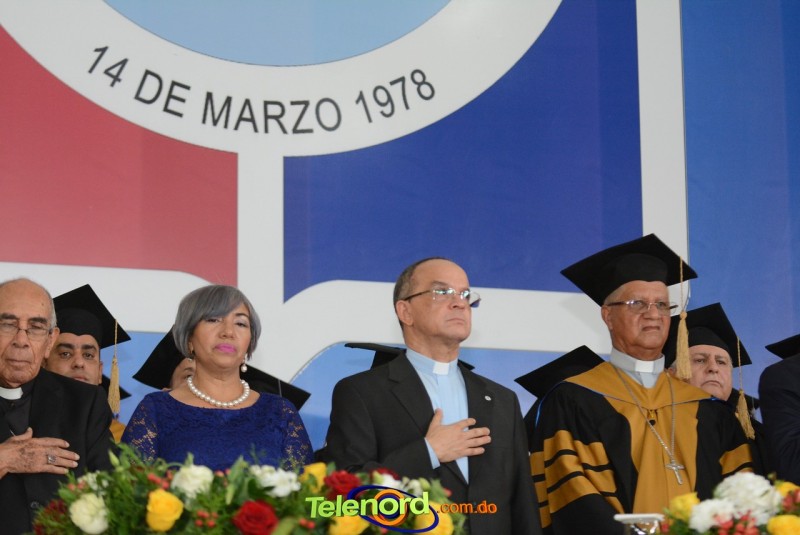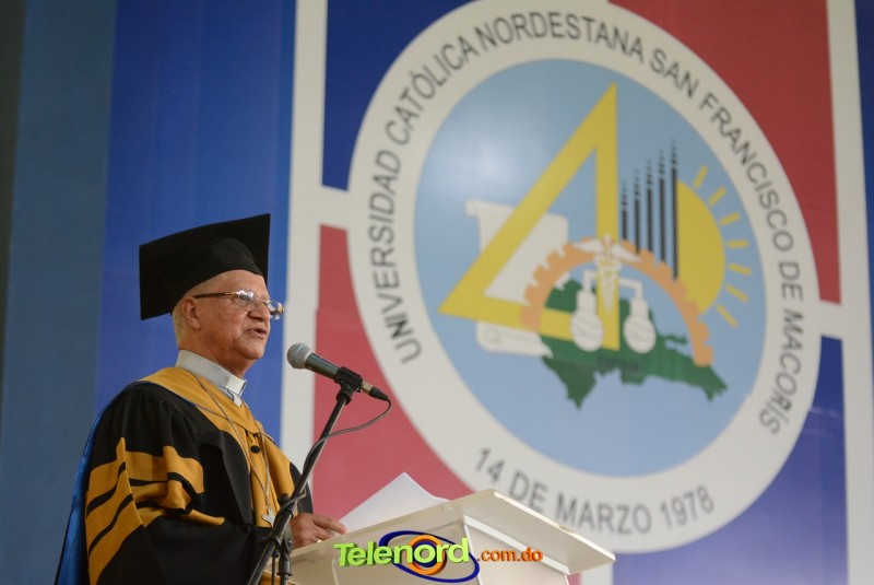 El Rector y Gran Canciller de la UCNE, Monseñor doctor Fausto Ramón Mejía Vallejo, acompañado de miembros de la junta de directores del centro, de los vicerrectores y decanos de las distintas facultades académicas, encabezó la ceremonia de graduación.