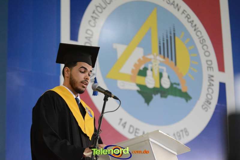Las palabras de gratitud a nombre de los nuevos egresados, estuvieron a cargo de José Rafael Infante Minaya, ingeniero civil, con honores Summa cum laude, quien exhortó a sus compañeros a trabajar por el país con honradez, lleno de valores y principios, “sólo cultivando los valores de la humildad, honestidad, compromiso y amistad, podemos ser referentes en nuestra sociedad”, apuntó.
