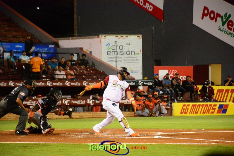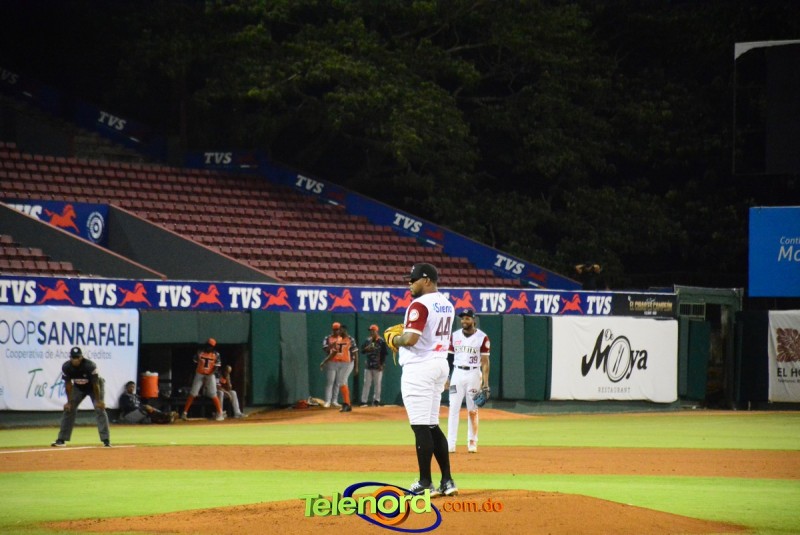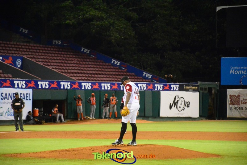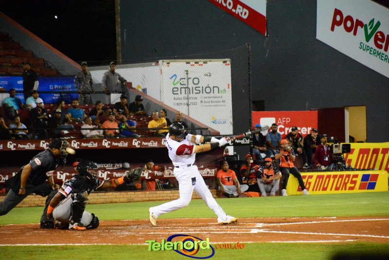 Los Gigantes marcaron una vuelta más en el quinto y en el octavo tuvieron la oportunidad de ampliar la pizarra, pero Tim Peterson dominó a Webster Rivas, con elevado de foul por tercera.