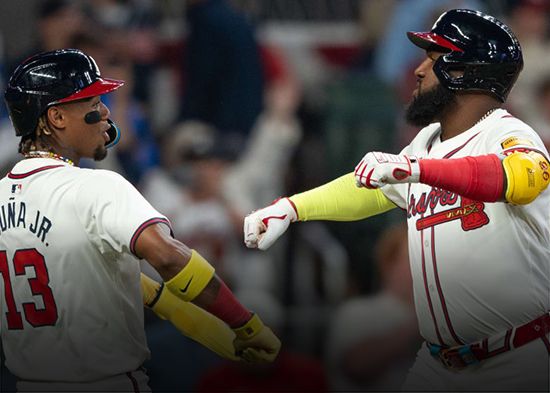 Marcell Ozuna con los Bravos de Atlanta conectó el jonrón en la tercera entrada con un corredor en circulación antes los envíos del lanzador colombiano Julio Teherán de los Mets de New York.