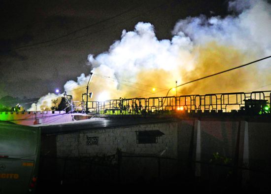 Leer más…Diez camiones de bomberos y varios helicópteros para sofocar incendio en cárcel La Victoria