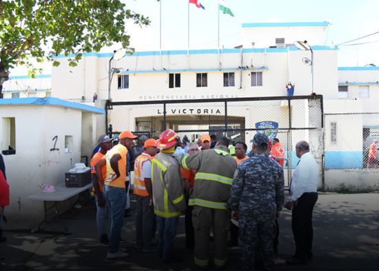 El Sistema Nacional de Atención a Emergencias y Seguridad 911 informó que unos 10 camiones de distintos Cuerpos de Bomberos del Gran Santo Domingo participan en el sofoque al siniestro que tuvo lugar en la Penitenciaría Nacional de La Victoria.