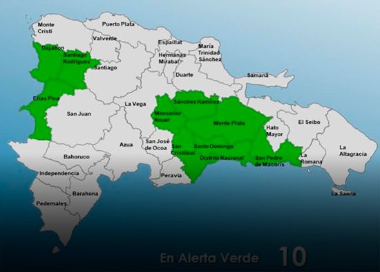 El Centro de Operaciones de Emergencias (COE) elevó este lunes a nueve provincias y el Distrito Nacional en alerta verde por posibles crecidas de ríos, arroyos y cañadas, así como por inundaciones urbanas y repentinas, debido a la persistencia de condiciones atmosféricas inestables provocadas por una vaguada combinada con una onda tropical.