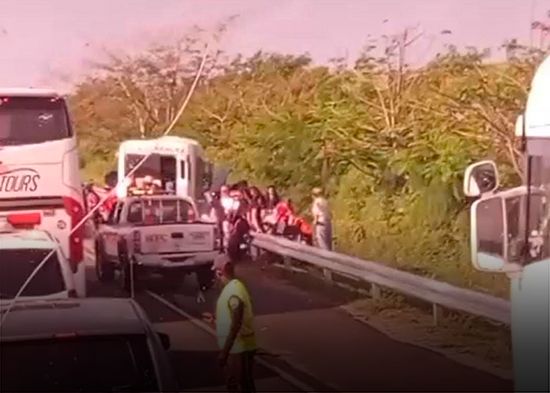 Un accidente de transito ocurrió la mañana de este martes cerca del peaje de la comunidad de Benerito en la autovía del Coral, al chocar un autobús cargado de turistas y una camioneta.