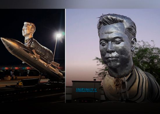 Admiradores de Elon Musk planean regalarle a su ídolo un monumento que ha costado 600.000 dólares. El conjunto consiste en un cohete sobre el que está montada una especie de cabra que tiene la cabeza del fundador de Tesla y SpaceX. La extravagante figura de aluminio mide nueve metros de largo y 1,7 de alto y le será entregada a Musk el día 26 de noviembre.