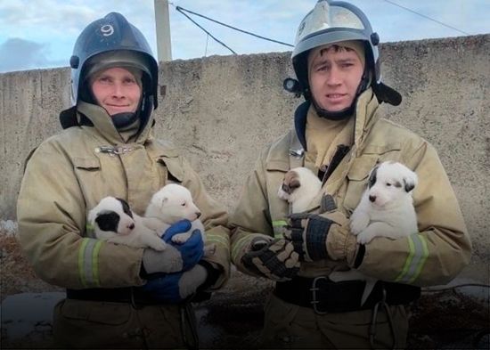 Un equipo de bomberos de la región siberiana rusa de Krasnoyarsk rescató a los cachorros de una perra que corrió desesperadamente detrás de ellos en busca de ayuda para salvar a sus crías.