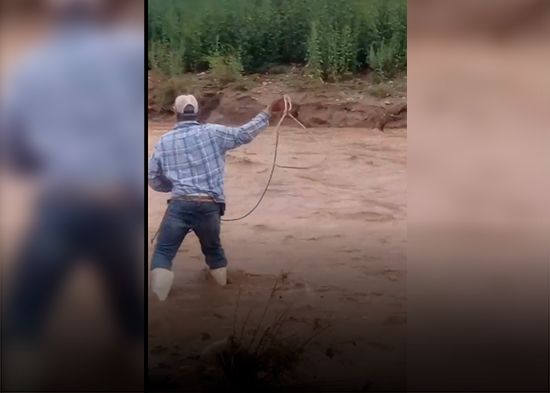 Rescatan al estilo 'vaquero' a un hombre que era arrastrado por un río en México (VIDEO)