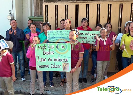 San Francisco de Macorís -Este viernes padres, profesores y estudiantes del centro educativo Cruce de los Basilios se concentraron en la parte frontal el Distrito Educativo 07-06 para exigir al Ministerio de Educación la entrega del nuevo centro, pues llevan más de 7 años a la espera.