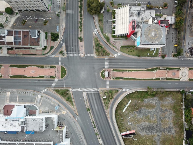 En las imágenes captadas por Virgilio Martínez Jones, se observan zonas como el Polígono Central, el Centro de los Héroes, la Avenida 27 de febrero y la Abraham Lincoln, que en días normales tiene alta circulación de vehículos, totalmente vacíos.