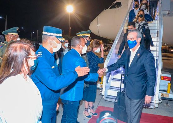 El presidente Luis Abinader retornó la noche de este viernes de Madrid, España, donde asistió a la Feria Internacional del Turismo (FITUR 2022, y desarrolló durante cinco días 27 actividades en procura de más inversiones para la República Dominicana.