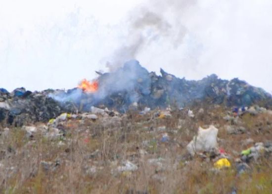 Brigadas del Cuerpo de Bomberos del Gran Santo Domingo trataban de apagar ayer pasadas las seis de la tarde llamas del incendio aún ardían en algunas áreas del vertedero de Duquesa, en Los Casabes, Santo Domingo Norte.