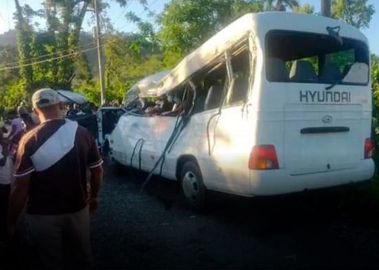 Hato Mayor. – 14 estudiantes entre 7 y 19 años, además de un adulto de 50 años, víctimas del accidente de tránsito ocurrido al impactar un autobús escolar con un camión tanquero, en el kilómetro 10 de la carretera Hato Mayor-Sabana de la Mar, fueron trasladados al Hospital Leopoldo Martínez.