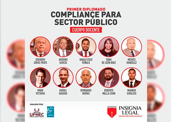 Santo Domingo.-Con el objetivo de contribuir a la formación de una nueva generación de servidores públicos se impartió la primera propuesta formativa en el país en cumplimiento regulatorio para el sector público bajo los estándares del Sistema ISO 19600, primera y única en su clase, avalado por la World Compliance Association y la Universidad Federico Henríquez y Carvajal, organizado por la firma Insignia Legal.
