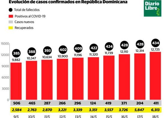 Leer más…Coronavirus: 434 fallecidos y 12,725 infectados en República Dominicana