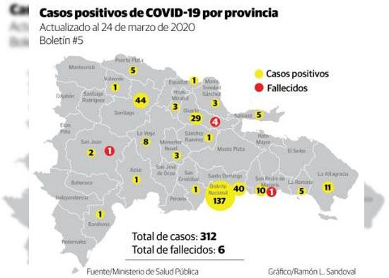 Los casos de coronavirus en República Dominicana aumentaron a 312.