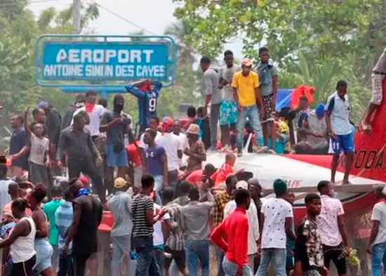 Los haitianos salieron el martes a las calles para protestar por la creciente inseguridad en el país caribeño y las manifestaciones se tornaron violentas en lugares como la ciudad sureña de Les Cayes, donde la gente irrumpió en el aeropuerto local y atacó una avioneta.