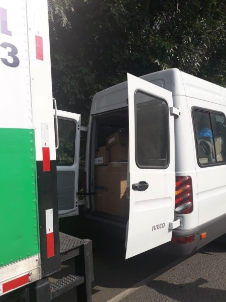 Uno de los vehículos que transportó los materiales donados.