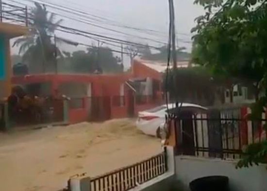 En el sector de Alto de Rafey, frente a la principal Zona Franca de Santiago, las inundaciones arrastraron algunos vehículos.